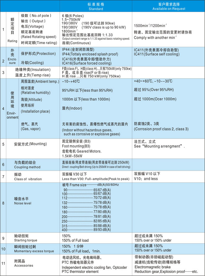 5)在高于規(guī)定溫度(40℃)的環(huán)境下使用時,電機需要降額使用,該情況下請與弊公司商量。