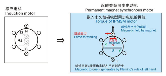 其構造為內嵌永久性磁鐵,無二次繞線,所以可將其損失控制在較低水平。